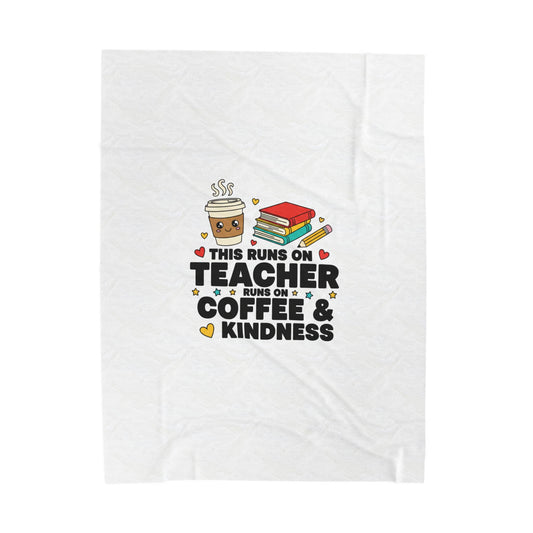 This Runs On Teacher Coffee & Kindness Velveteen Plush Blanket | Teacher Appreciation