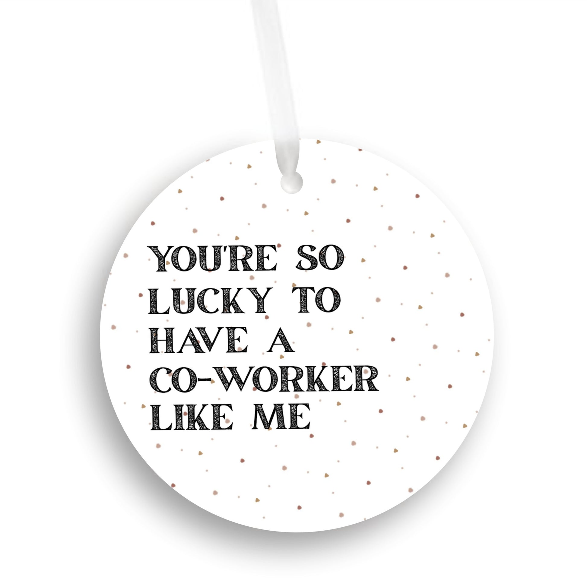 Funny Coworker Gift • Small Round Christmas Ornament • “You’re So Lucky to Have a Coworker Like Me” • Office Holiday Gift • Secret Santa Present